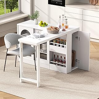 Ein an der Wand montierter Klapptisch ist ideal für kleine Küchen. Er dient als Frühstückstheke oder zusätzliche Arbeitsfläche und lässt sich bei Nichtgebrauch einfach wegklappen. Wählen Sie ein Modell mit integriertem Stauraum für noch mehr Effizienz.