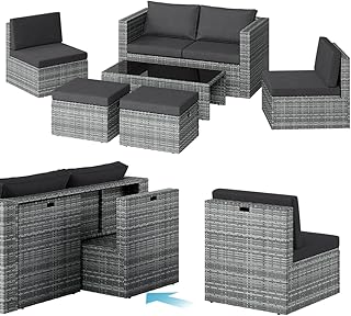 Material: Wählen Sie wetterfeste Materialien wie Polyrattan, Aluminium oder behandeltes Holz, die den Witterungsbedingungen standhalten.
