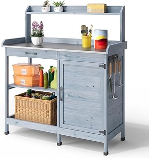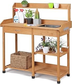 Als Pflanzstation können Sie bequem im Stehen Ihre Setzlinge umtopfen, ohne Rückenschmerzen befürchten zu müssen. Die robuste Arbeitsfläche ist ideal für das Befüllen von Blumentöpfen mit Erde, das Aussäen von Samen oder das Umtopfen von Pflanzen. Viele Modelle verfügen über spezielle Aussparungen oder Becken, die das Auffangen überschüssiger Erde erleichtern.