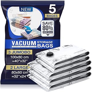 Vakuumbeutel komprimieren Ihre Kleidung auf ein Minimum und schaffen so Platz für mehr Teile. Besonders bei sperrigen Winterjacken oder dicken Pullovern lässt sich damit erheblich Platz sparen. Der zusätzliche Vorteil: Die versiegelte Verpackung schützt zuverlässig vor Motten und anderen Textilschädlingen.