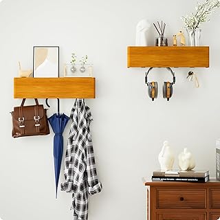 Die Kombination aus Ablage und Aufhängung macht diese Möbelstücke so vielseitig. Auf der Regalfläche können Sie Schlüssel, Briefe, Bücher oder dekorative Elemente platzieren, während die Haken Platz für Jacken, Taschen, Schals oder andere Accessoires bieten. So schaffen Sie mit nur einem Einrichtungsgegenstand Ordnung für verschiedenste Alltagsgegenstände.